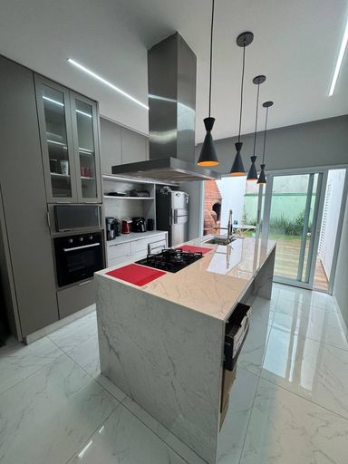 A casa possui 203m² de construção, num terreno de 250m². Possui 3 quartos com piso em taco, 2 dos quartos tem ar-condicionado e quarto do casal tem guarda-roupa embutido com uma das portas sendo o acesso a suite. 3 banheiros, com pia em marmore, armários planejados e box de blindex, com um destaque no banheiros da suite que possui banheira. Cozinha com piso e recheada de armários planejados, integrada a sala de jantar, com acesso ao jardim de inverno. Lavanderia toda no piso e ampla. Sala com piso em taco e bem ventilada. Garagem para 2 carros e frente da casa toda em pedra portuguesa. Acabamos por aqui? Não. No fundo temos uma ampla e coberta área gourmet com com piso e churrasqueira em tijolinho a vista, pia em mármore e armário, 2 cômodos e banheiros. Também possui aquecedor solar com um reservatório de 400 litros Estuda Permuta Agende sua visita pelo whatsapp 19 97129-4627 cod 630