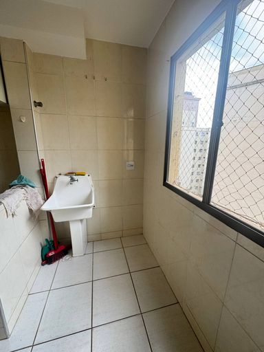 Este apartamento, no sexto andar, possui boa iluminação, sala confortável, cozinha com armários e a lavanderia pode receber uma divisória. Os quartos são espaçosos e um deles já conta com armários. Possui um banheiro também com espaço bom.