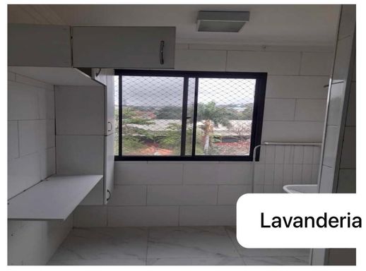 O apartamento conta com sala, varanda, cozinha repleta de armários, lavanderia, 2 dormitórios também com armários e banheiro social.