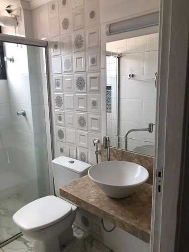 O prédio possui elevador e o condomínio conta com salão de festas, salão de jogos e bicicletário.
