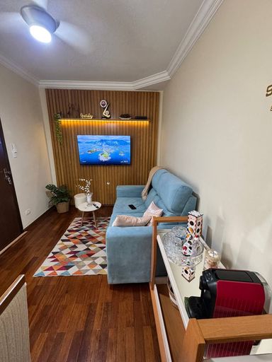Este apartamento foi reformado e se encontra em ótimo estado. A sala está com painel, a cozinha é moderna e possui bancada estendia, cooktop e ótimos armários.
