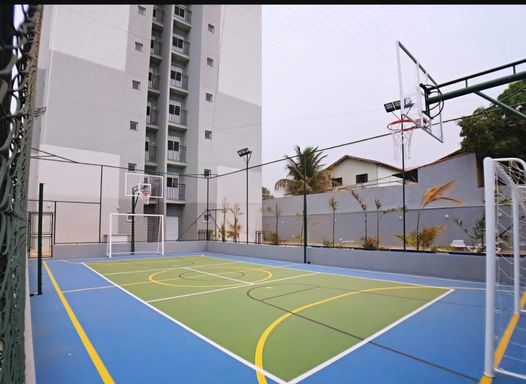 O condomínio oferece portaria 24 horas, playground, piscina, churrasqueira, salão de jogos, salão de festa, sala de reunião).