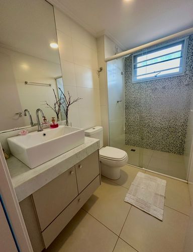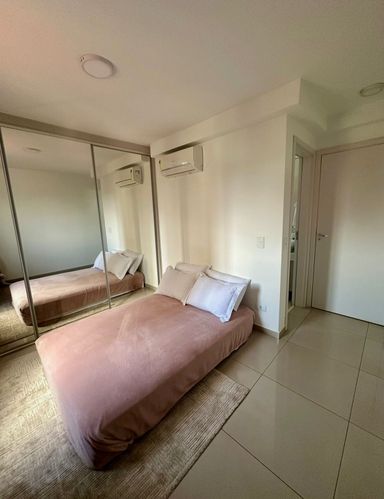 Tanto sala como suite contam com ar condicionado (há área tecnica para as máquinas) e o acabamento é todo em porcelanato.
