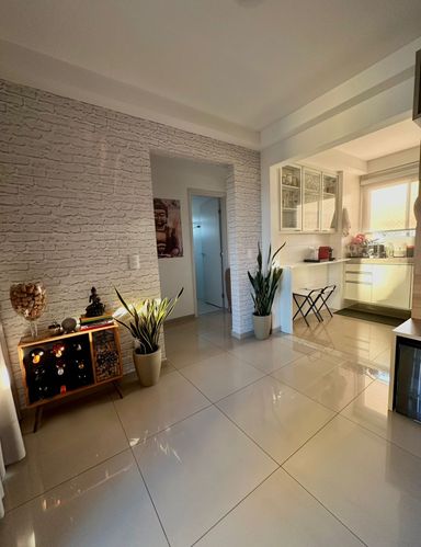 Ótimo apartamento a venda, com área total de 72m2 e linda vista. Contando com sala ampla, cozinha planejada e integrada, área de serviços, varanda gourmet com churrasqueira, 2 dorms, sendo uma suíte.