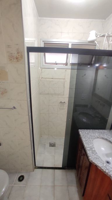 - Banheiro social com box em vidro temperado;