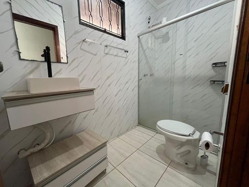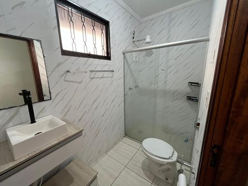- Banheiro social com box em vidro temperado;