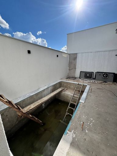 No quintal temos um lavabo e uma piscina. Está em obras, previsão de entrega em março de 2026.