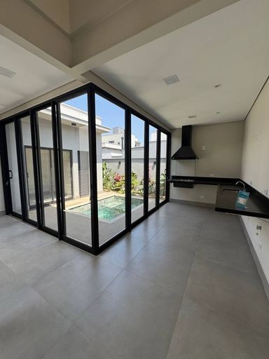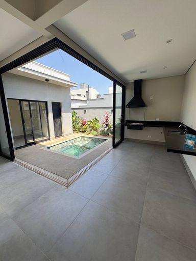 A sala é integrada com pé direito alto, cozinha gourmet integrada, garagem para 2 carros cobertas, lavanderia. quintal com piscina e chuveirão e banheiro externo completo