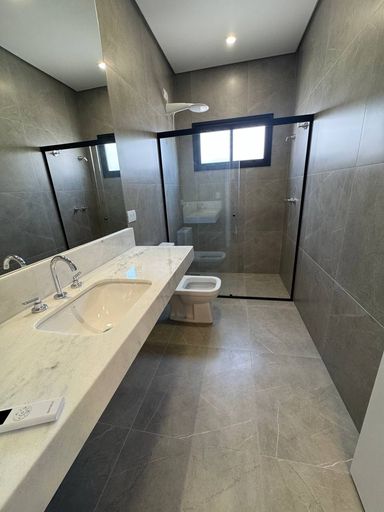 São 3 dormitórios sendo 1 suíte master, 1 banheiro social completo para os outros 2 quartos. Os 3 quartos possuem janelas de alumínio automatizadas com controle remoto e blackout