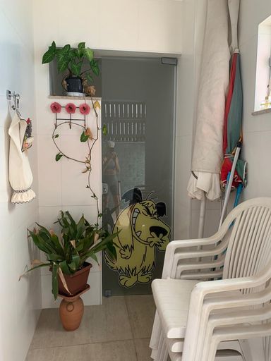 Na garagem são 3 vagas, uma ao lado da outra.