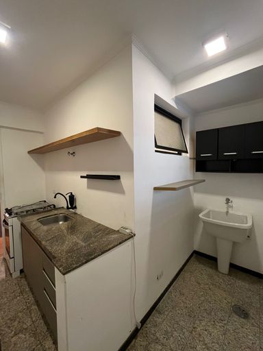 O imóvel conta com 34,50 m² de área privativa, muito bem distribuídos em um ambiente funcional e aconchegante. Possui 1 dormitório com armários planejados integrado à sala, proporcionando melhor aproveitamento do espaço, cozinha com gabinete e fogão, além de área de serviço com armário e banheiro social com box em blindex.