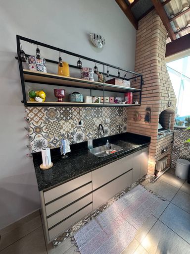 A residência conta com garagem coberta para 2 carros, área gourmet com pia e churrasqueira e piscina climatizada (aquecimento solar).