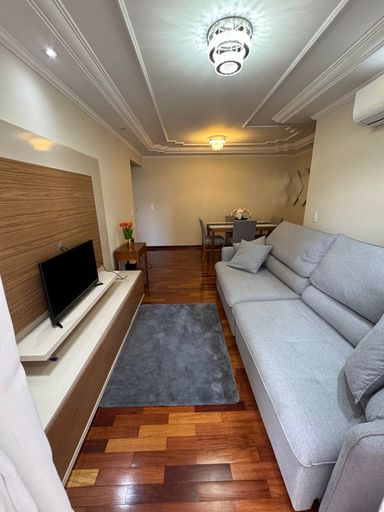 Apartamento reformado possui cozinha com armários planejados, bem iluminada, com acabemento em porcelanato. Lavanderia separada e com um bom espaço, pia em mármore e armário planejado. Sala de estar integrada a sala de jantar com um excelente espaço, climatizado com ar-condicionado e painel de TV planejado. Varanda. 2 Banheiros lindos com pia em mármore, armário planejado, acabemento em porcelanato, teto rebaixado e box em blindex, sendo que 1 deles suite.