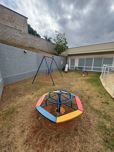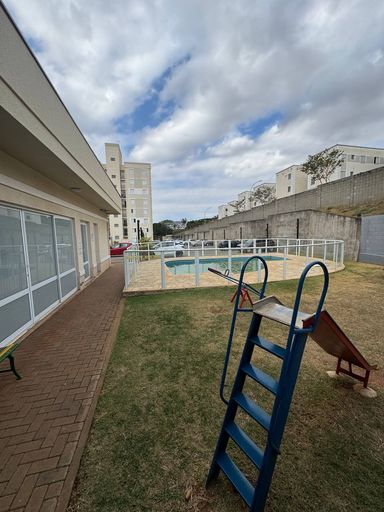 Na área de lazer do prédio tem piscina, parquinho e salão de festas.