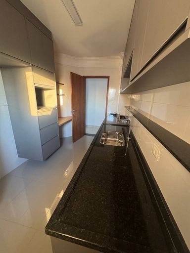 Cozinha espaçosa repleta de armários, lavanderia, dispensa e varanda técnica, todo em porcelanato. Conta ainda com 4 vagas cobertas tamanho G.