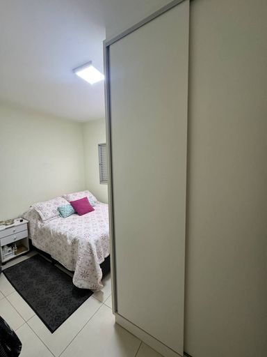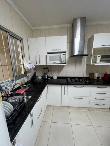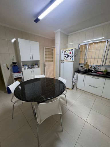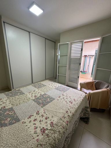 Possui sala com ar condicionado, cozinha ampla com armários, coifa e cooktop, 3 dorms, todos com armários, sendo uma suíte com porta balcão para o quintal, e um deles com ar condicionado também, lavanderia e duas vagas.