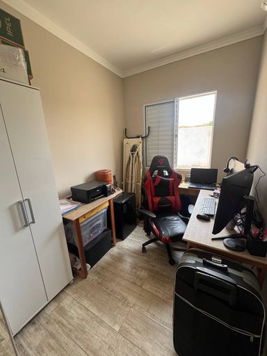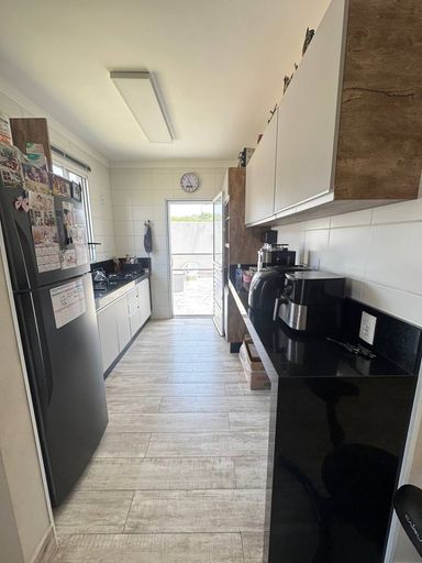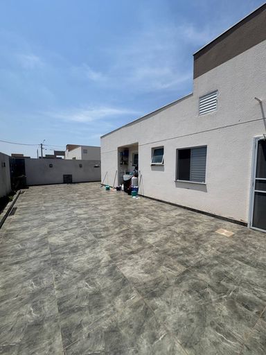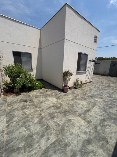 No total temos 3 dormitórios, sendo uma suíte, sala e cozinha integrados e um grande quintal em "L" com a lavanderia.